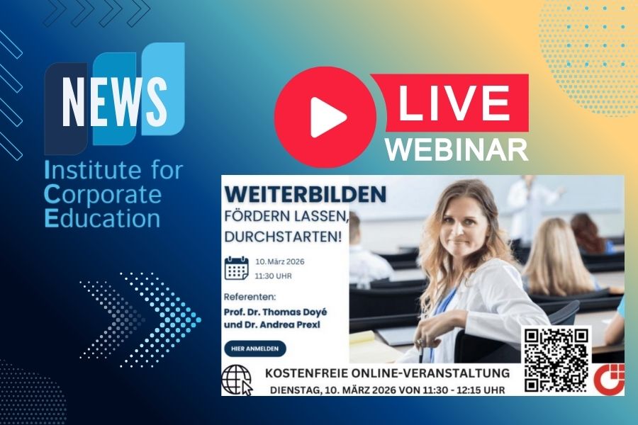 Prof. Dr. Thomas Doyé, Geschäftsführer des ICE Institute for Corporate Education, gibt Einblicke aus über 30 Jahren Erfahrung in Industrie, Hochschule und Weiterbildung. Dr. Andrea Prexl, Programm-Managerin am ICE, Expertin in der Umsetzung von innovativen Weiterbildungsprogrammen.